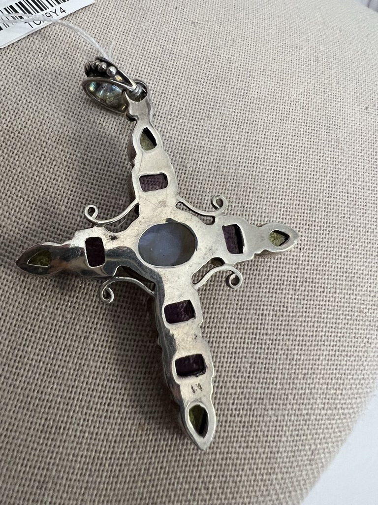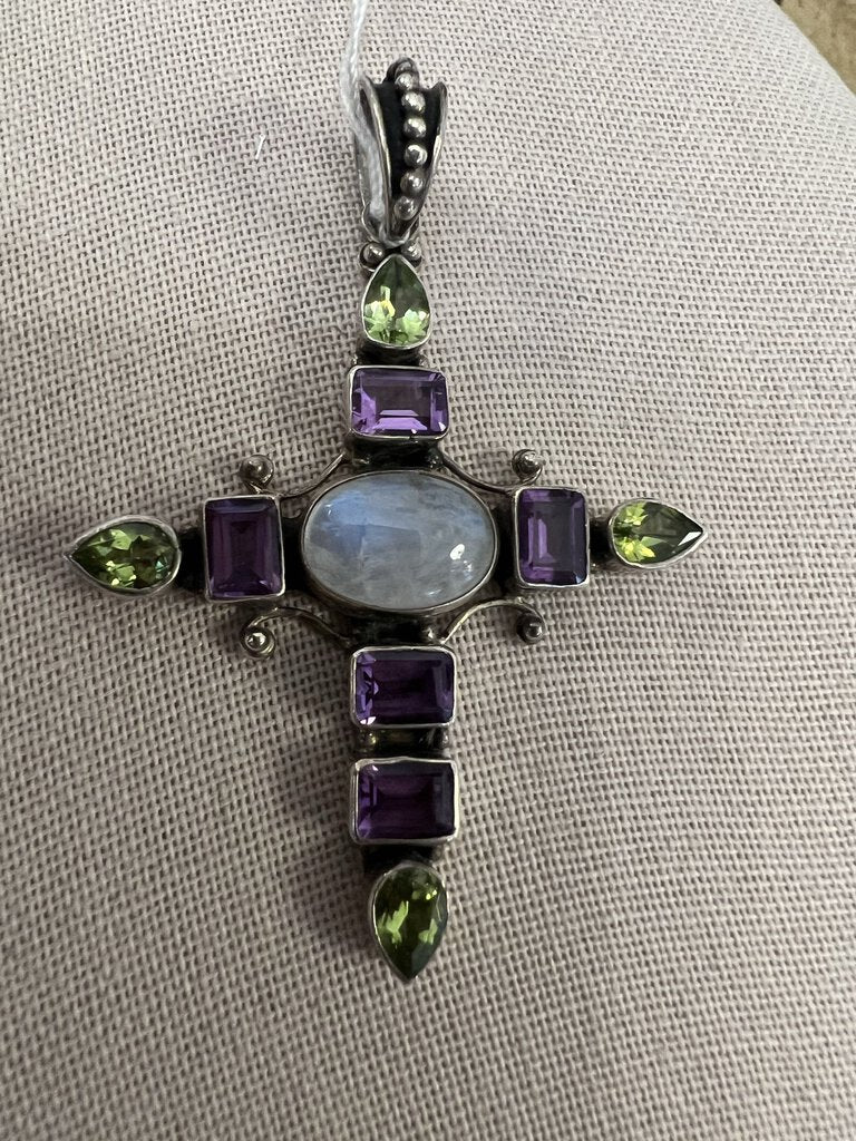 Vintage Sterling Amethyst Moonstone Peridot Cross