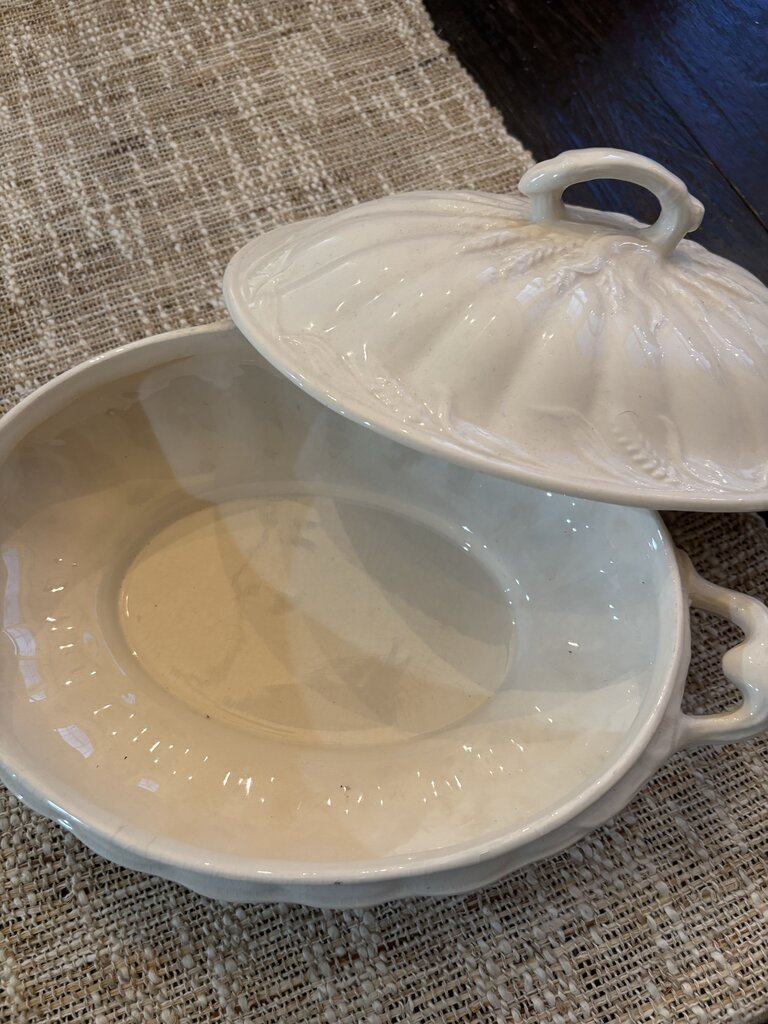 Antique Ironstone Lidded Oval Vegetable Bowl Wheat Pattern