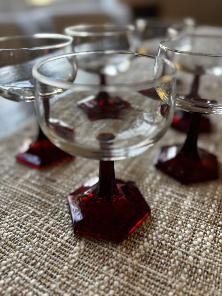 Set of 6 Vintage Luminarc Clear and Ruby Red Hexagon Coop Glasses