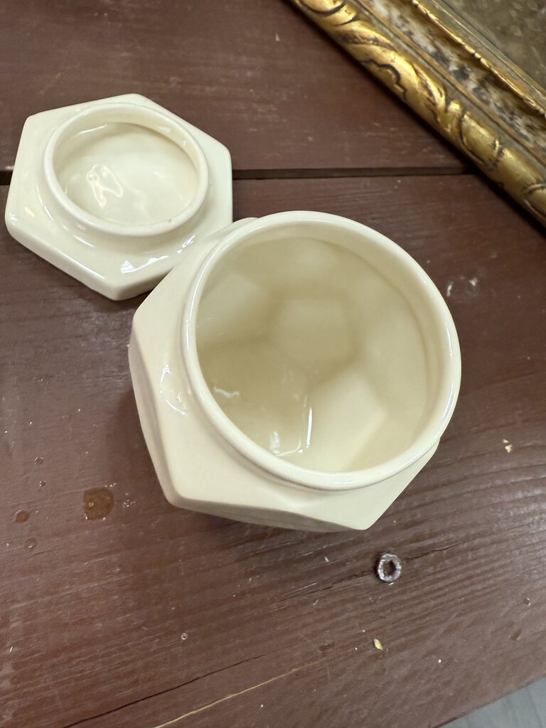 Vintage hexagonal ceramic jar with lid, Mallyan Spout Hotel