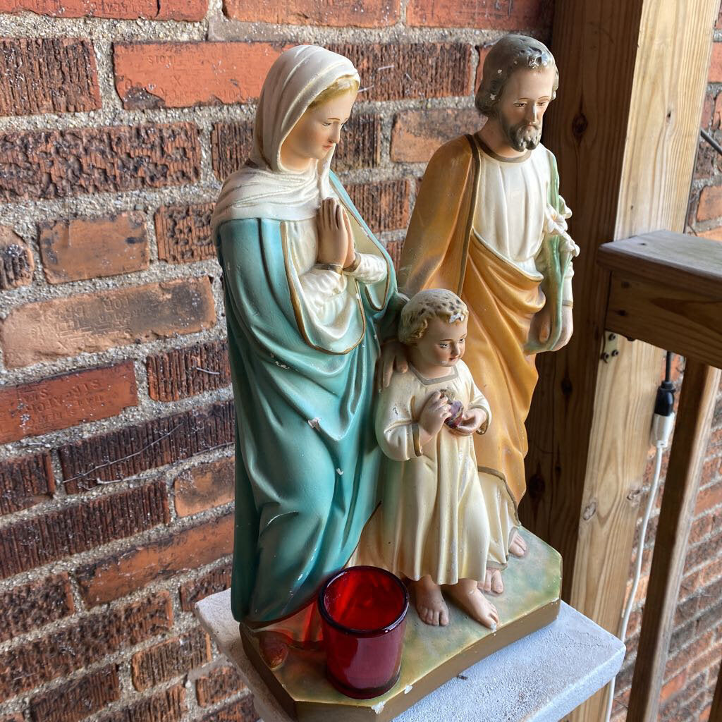 Mary Joesph and Jesus chalk wear statue 13in tall