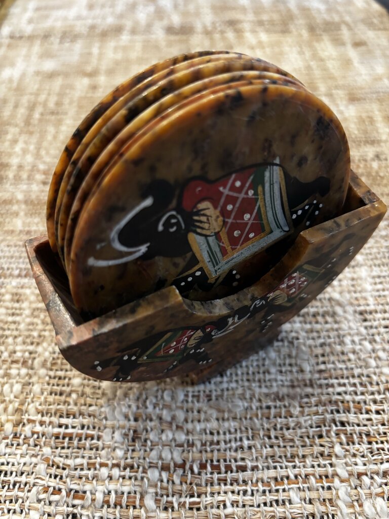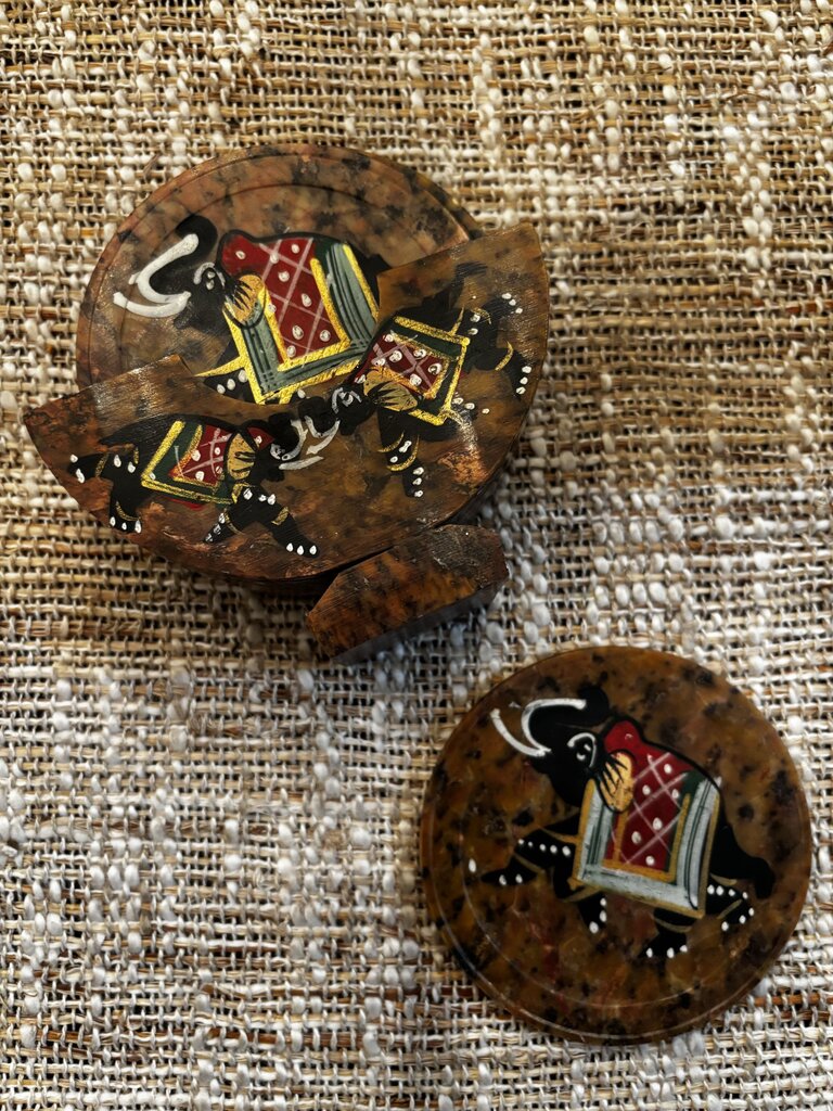 Set of 6 Hand Painted Elephant Design Marble Coasters
