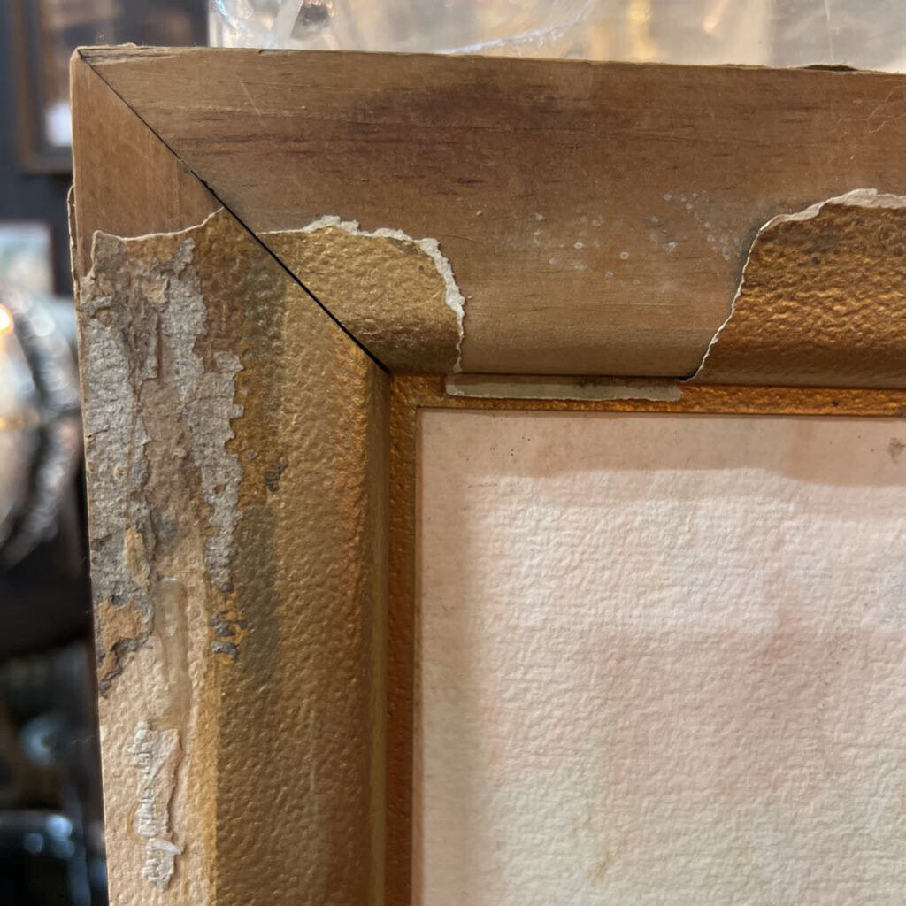 Vtg Original Watercolor in Distressed Frame 21.25" x 13.25"