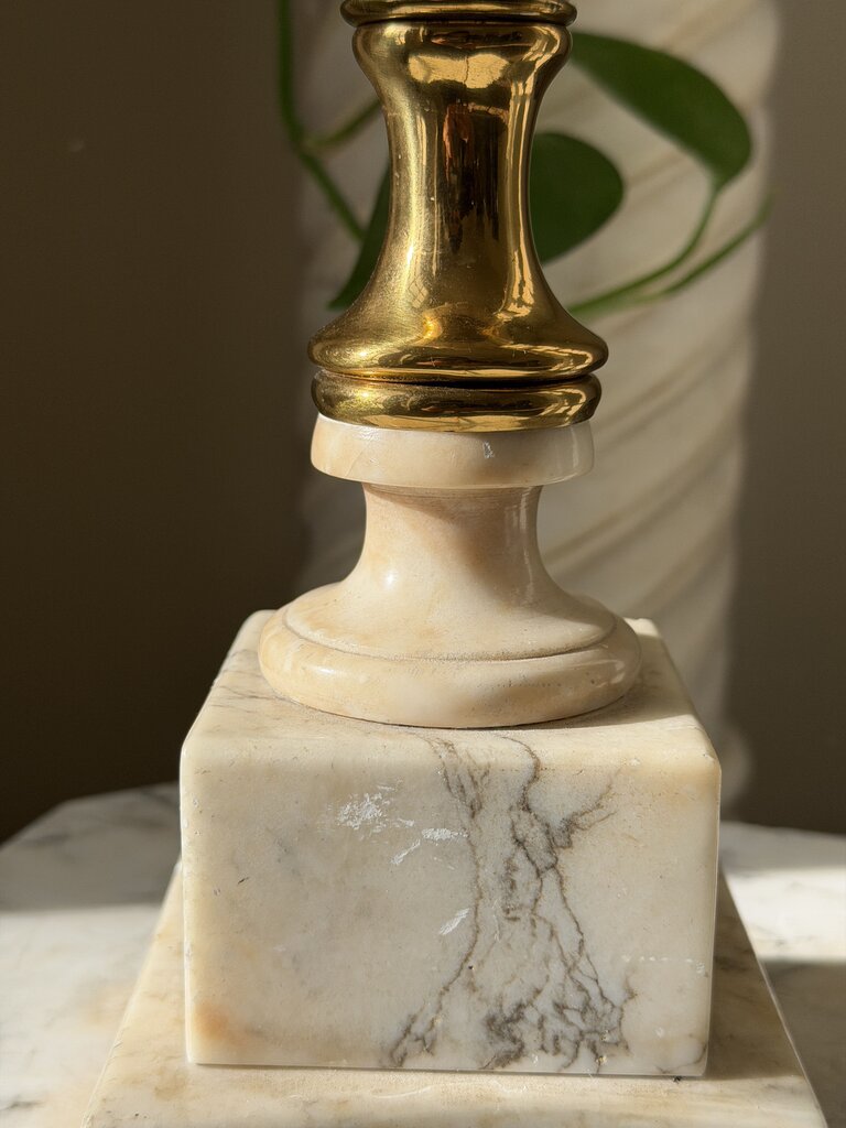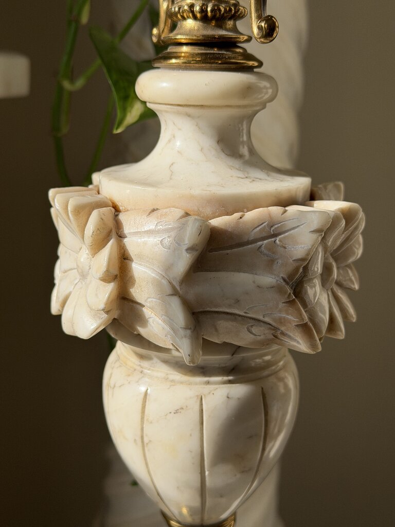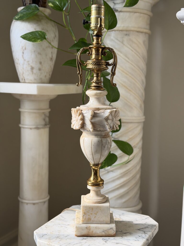 0186 Floral Motif Alabaster & Brass Lamp (works)