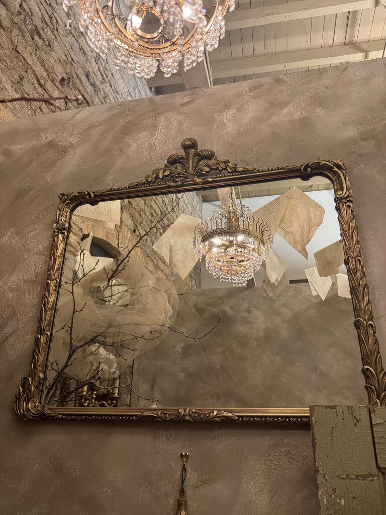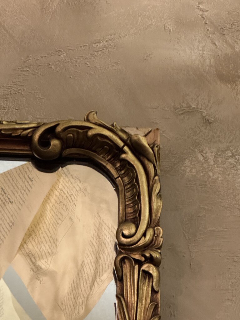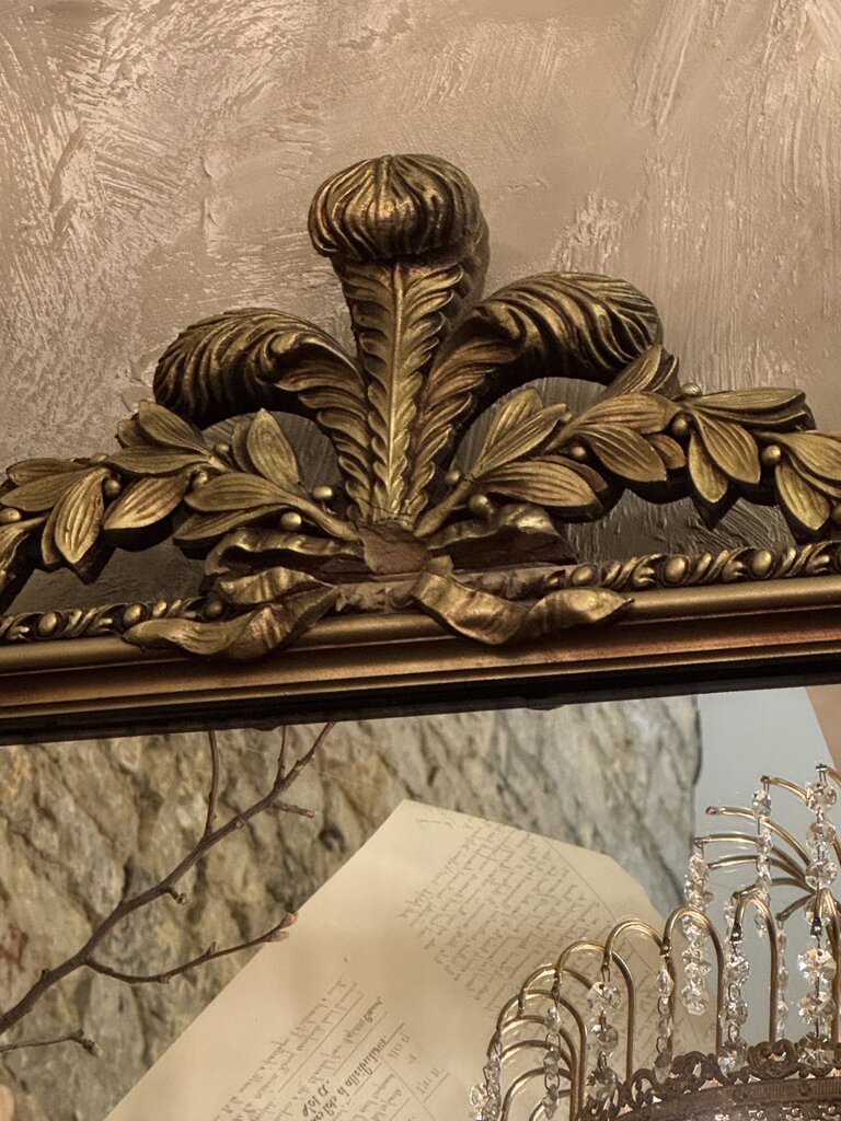0317 Antique wood gilt wall mirror with fleur de lis top