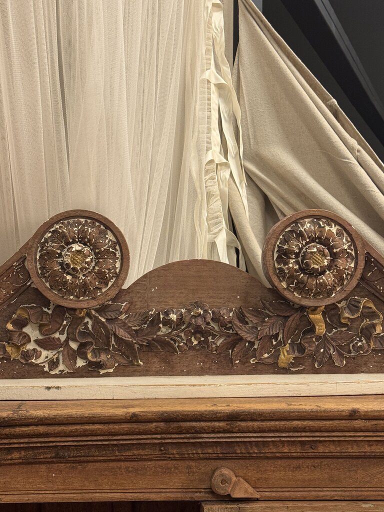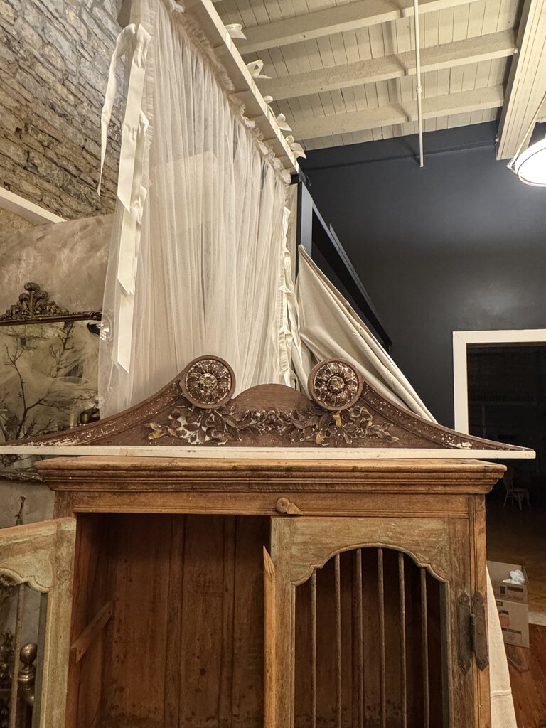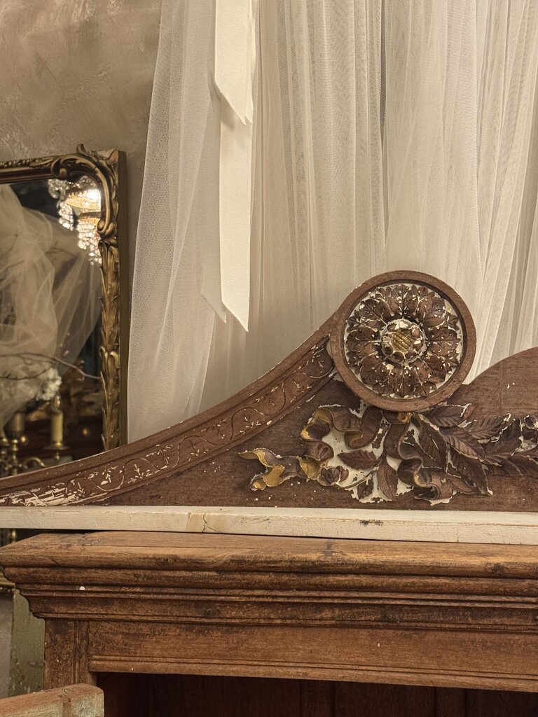 0394 Rustic large wood carved salvage pediment