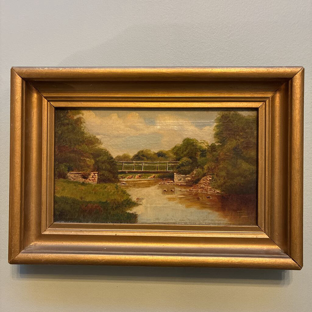 Antique Framed Oil Painting of Bridge 11 x 16