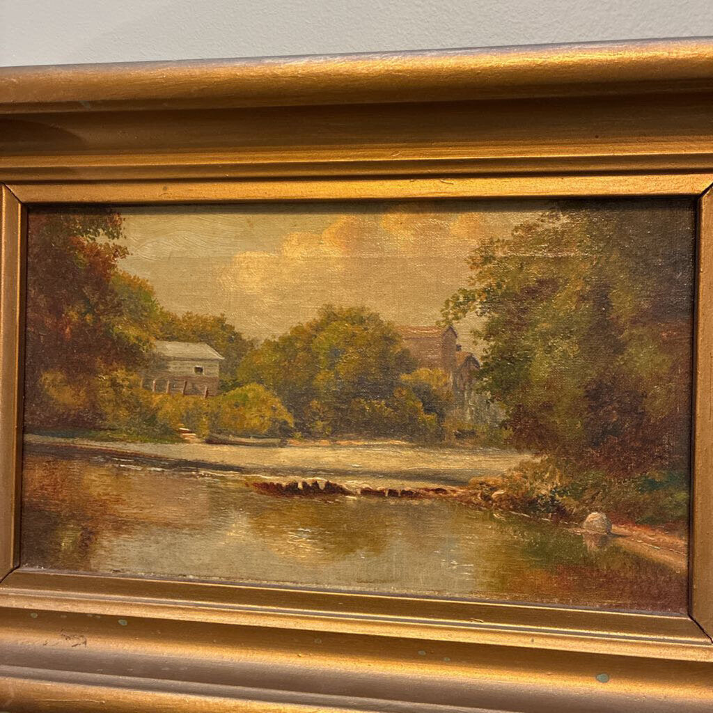 Antique Framed OIl Painting of River 11" x 16"