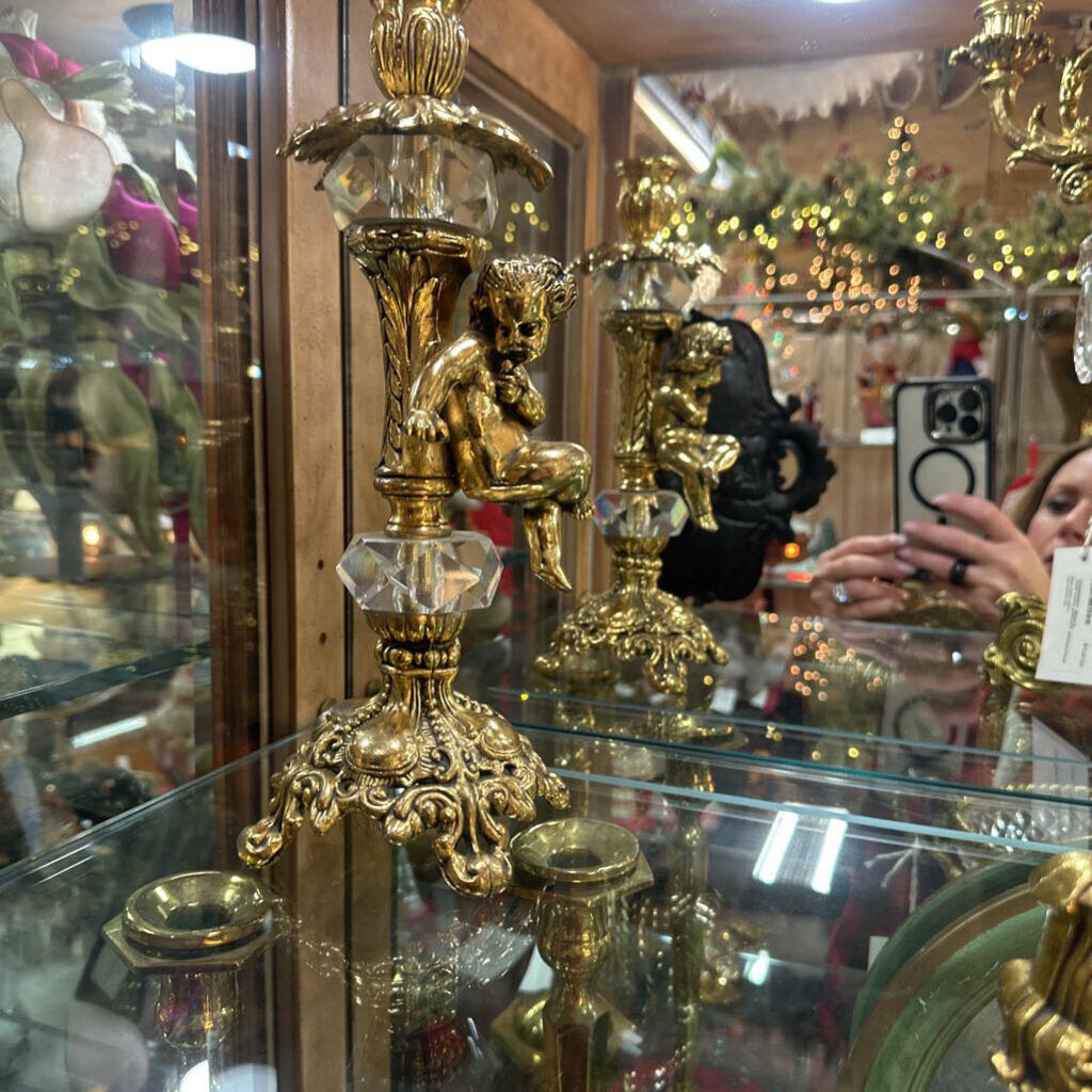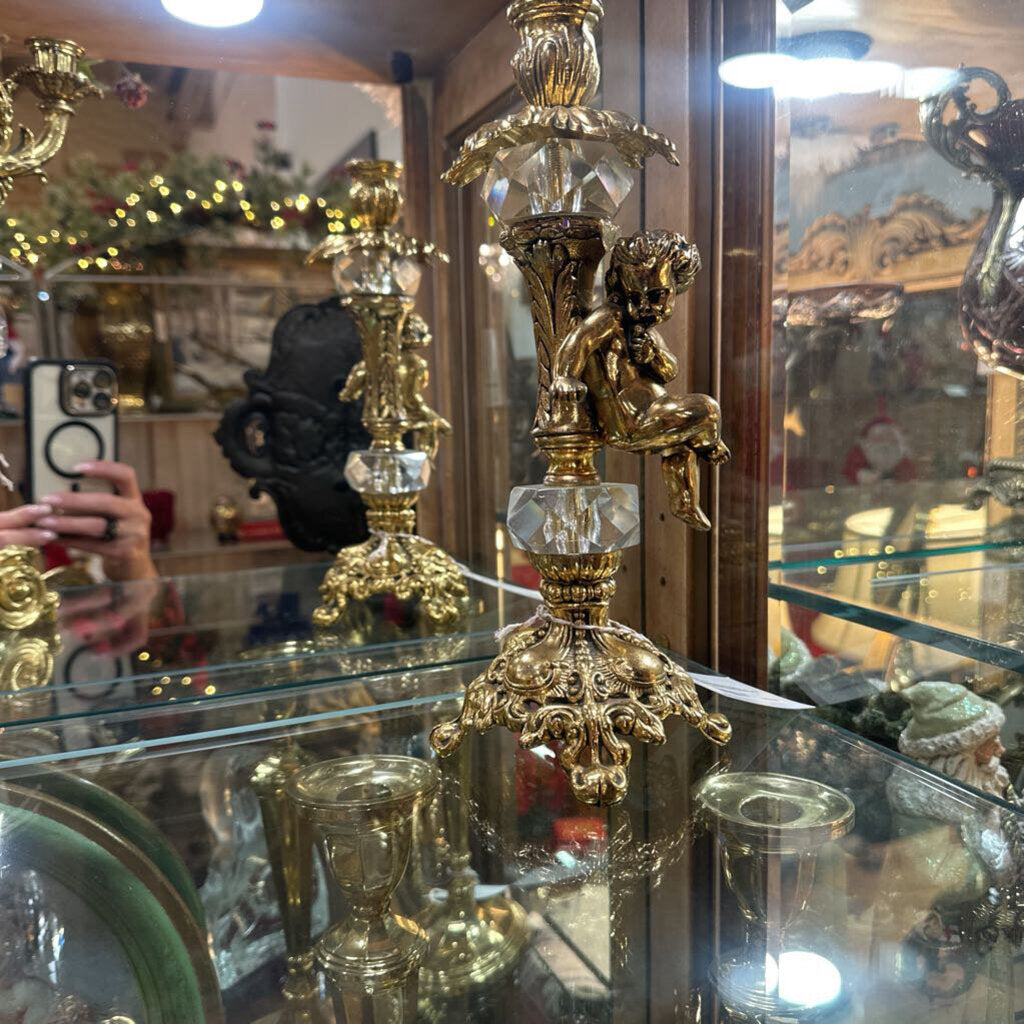 Hollywood Regency Gold/Crystal Candelabra 16x10.5"