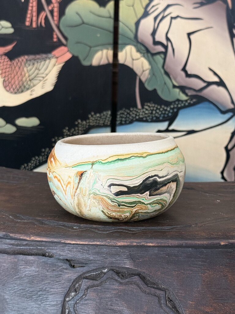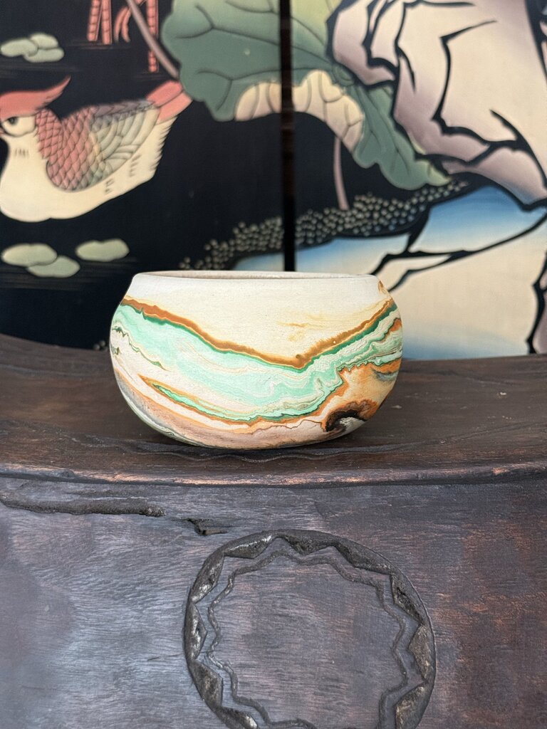 C- Nemadji 5 wide x3 tall orange and green glaze