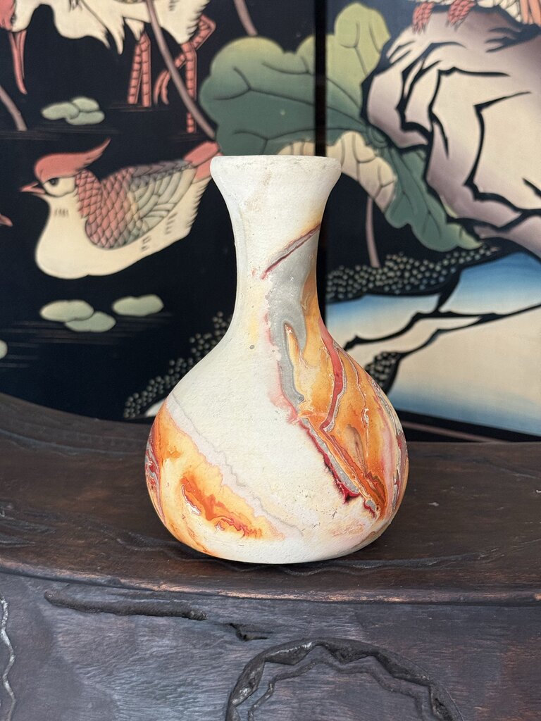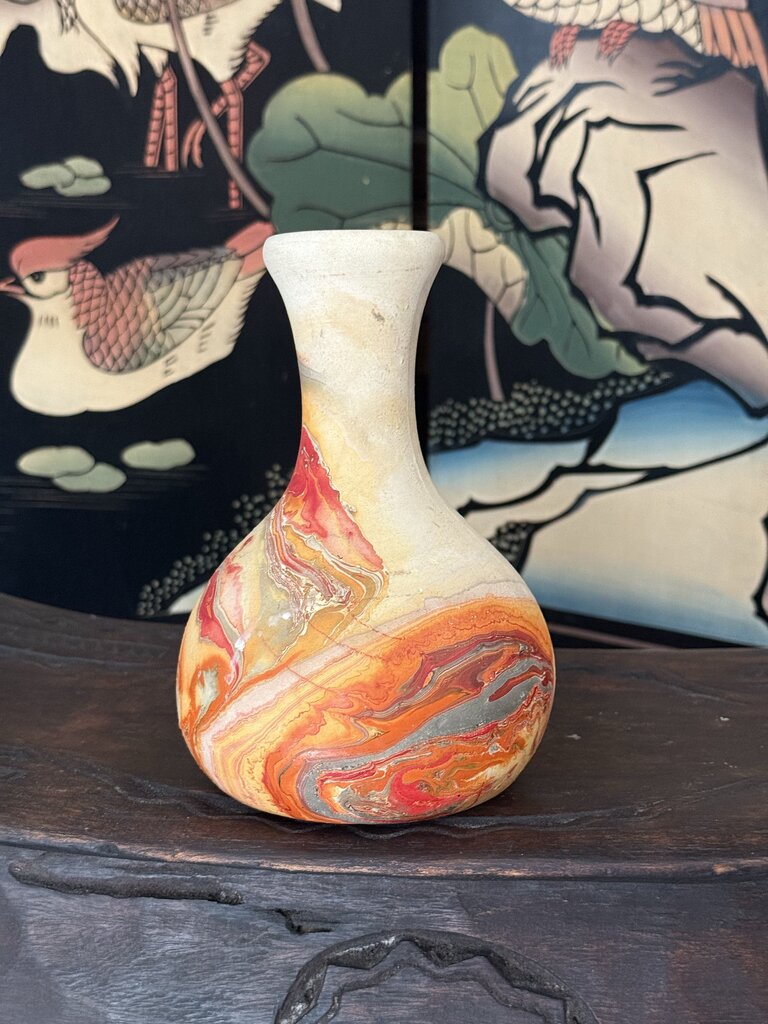 E- Nemadji tall vase orange red gray 7 tall x 5 wide
