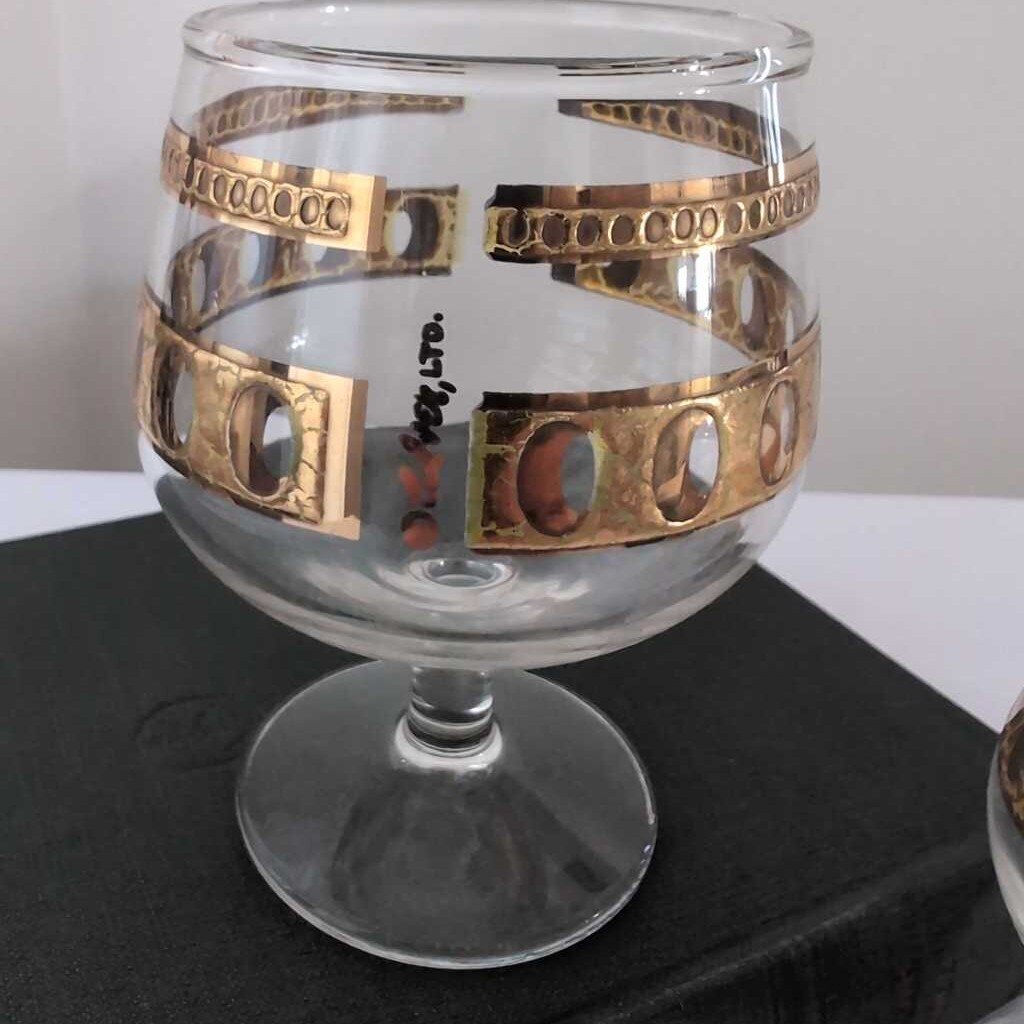 Pair of Vintage Culver Antigua Pattern Snifter Glasses