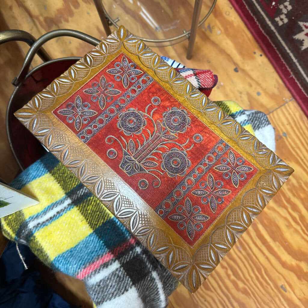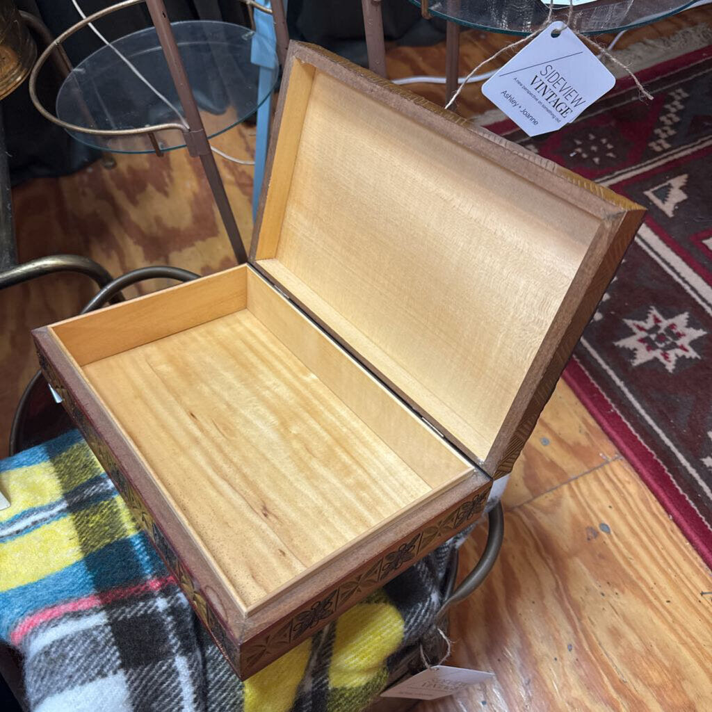 Carved Lidded Wooden Box with Red 7.5" x 11" W1899