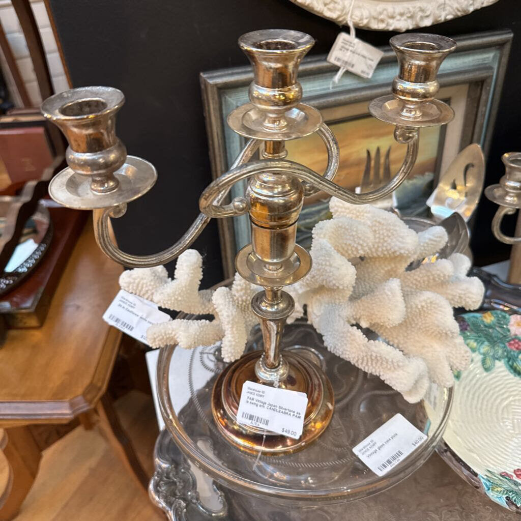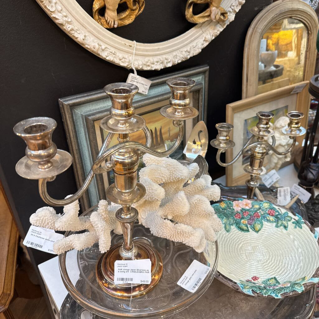 PAIR Vintage Japan Silvertone as is swing arm CANDLEABRA PAIR