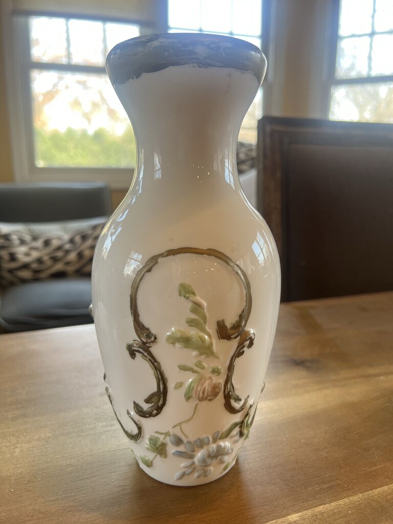 Antique Hand Painted Milk Glass Vase