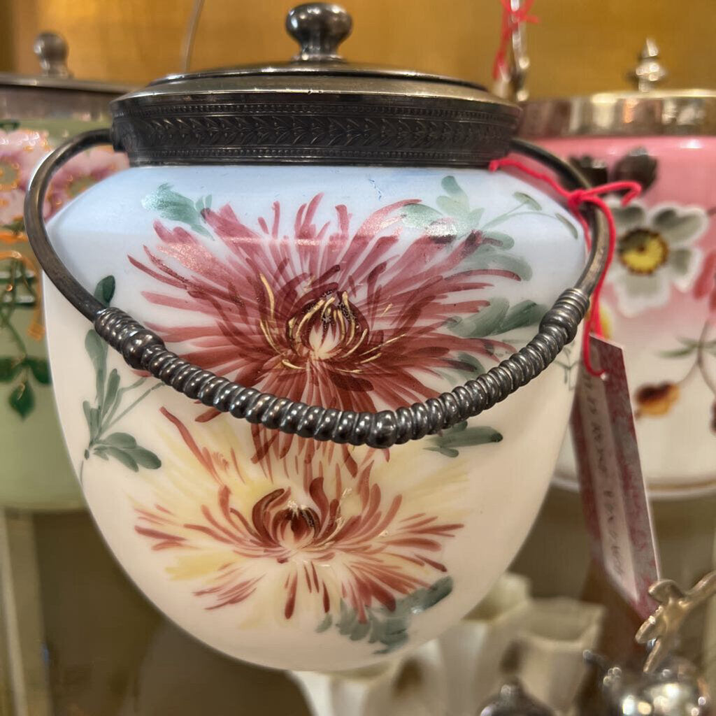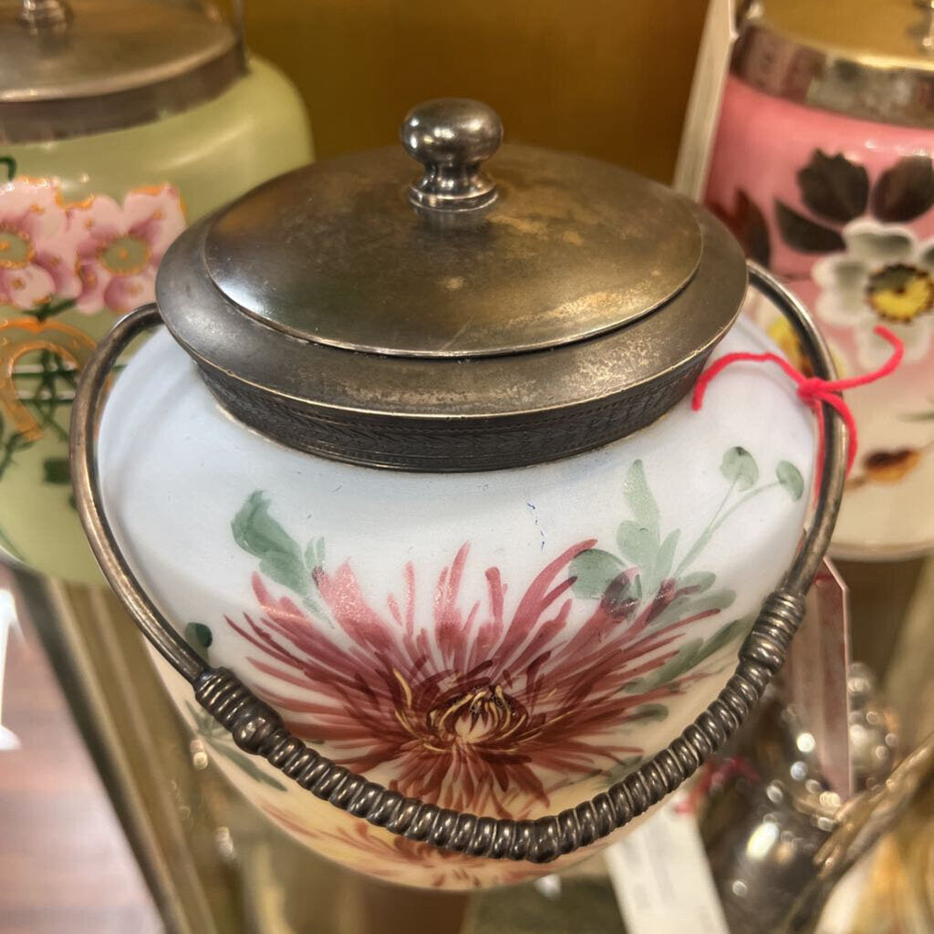 Antique Hand Painted Spider Mums Biscuit Jar