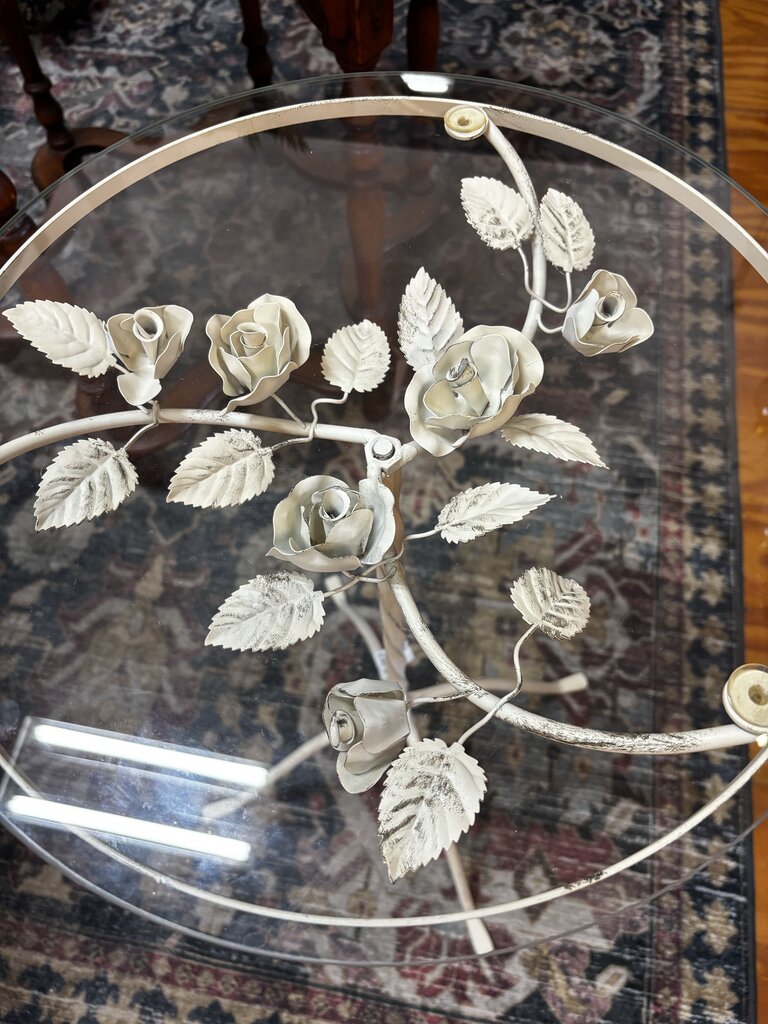 Mid Century Rose Wrought Iron Glass Top Side Table 27.5H x 16R (in store PU)