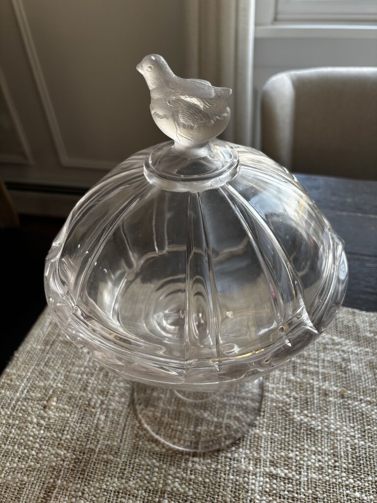 Vintage Compote w/Lid and Frosted Chicken Finial 13"